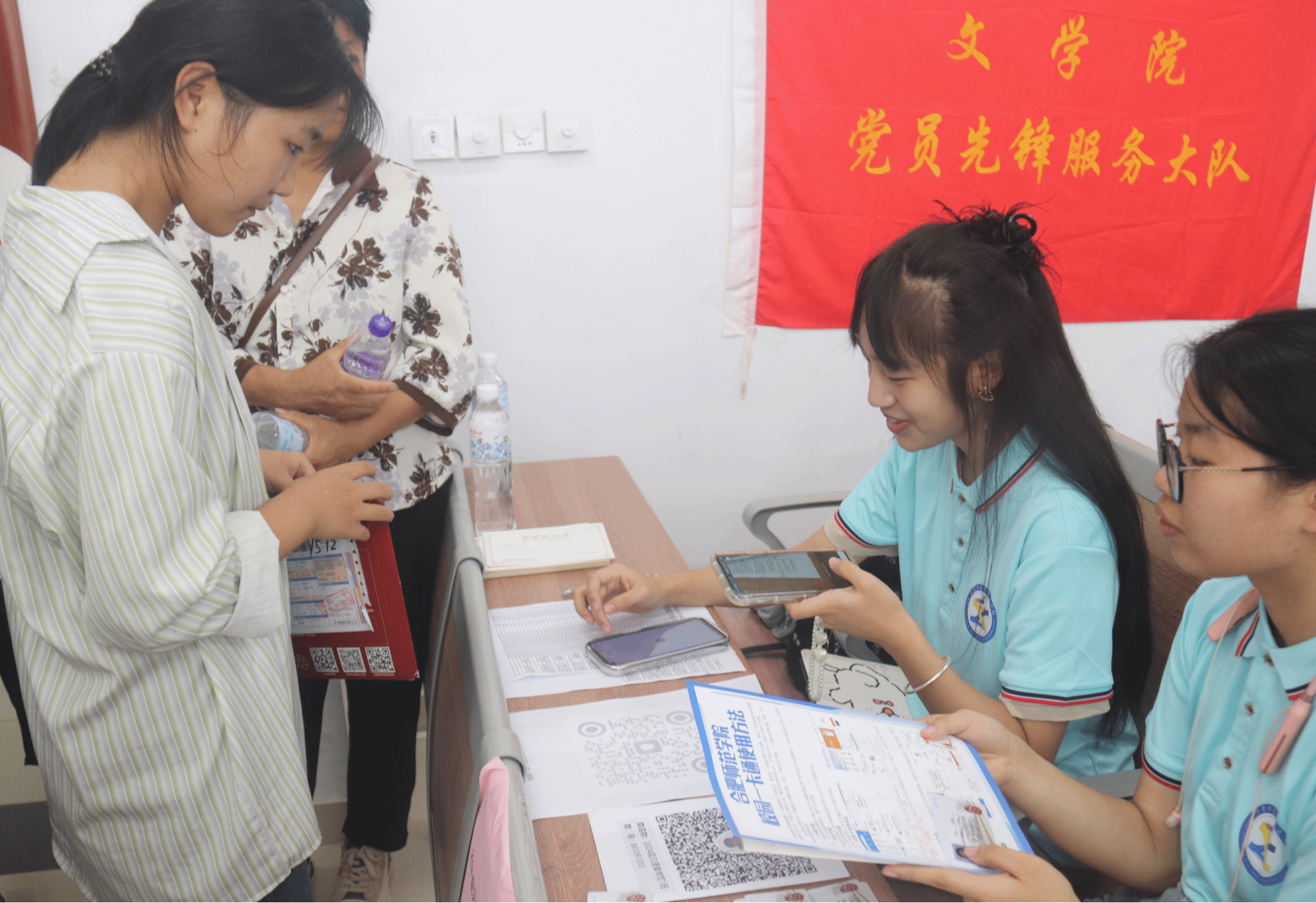 迎新现场,公司党员先锋佩戴党员徽章和志愿袖章,在迎新的队伍中,他们忙碌的身影格外醒目,协助新生搬运行李,为新生答疑解惑,带新生们了解校园,帮助新生办理报到手续,为2024级新生安全有序入校报到提供了强有力的支持。
