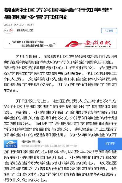 安徽新闻网报道公司方兴居委会党员“行知学堂”