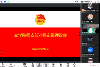 为规范运行基层团支部各项工作,更好的发挥团组织的政治功能、体现政治价值,不断增强团组织的政治性、先进性、群众性。12月7日,2022年团支部“对标定级”汇报工作在线上召开。本次会议由WilliamHill体育团委书记李惠恩主持,WilliamHill体育19级、20级、21级各支部团干参与此次会议。