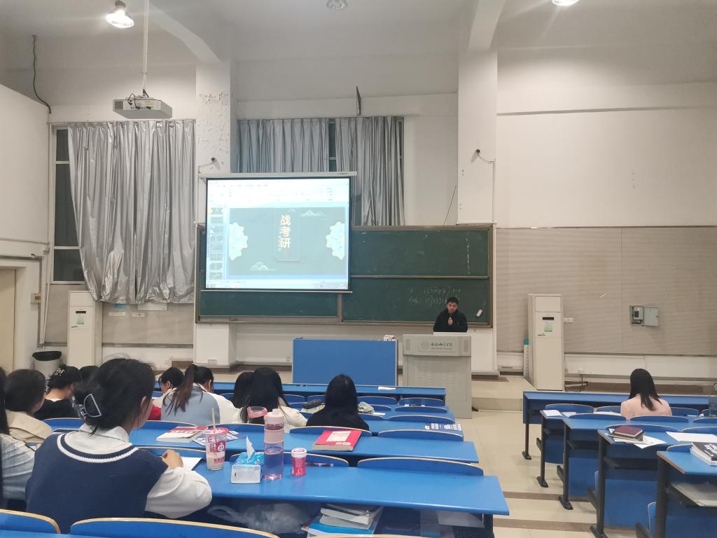 交流会上,9位党员硕士研究生依次做考研经验交流,从理性择校、初试复试准备、备考时间安排、合理调整心态等方面全面详细地向到会同学传经送宝。同时,对在场同学们针对择校、备考等提出的疑问予以耐心指导帮助。最后9名研究生鼓励在场同学努力抓住人生机遇迈向更高的平台,发挥出自己的潜力,让自己的青春不留遗憾,并表达了对准备考研同学的美好祝愿。