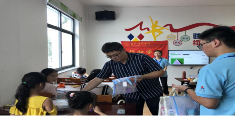 刁文彬一行走进了公司旌德“行知学堂”课堂,认真观摩了小先生们的课堂教学,充分肯定了小先生们的工作,向小学员们送去了祝福,并赠送了学习用品。