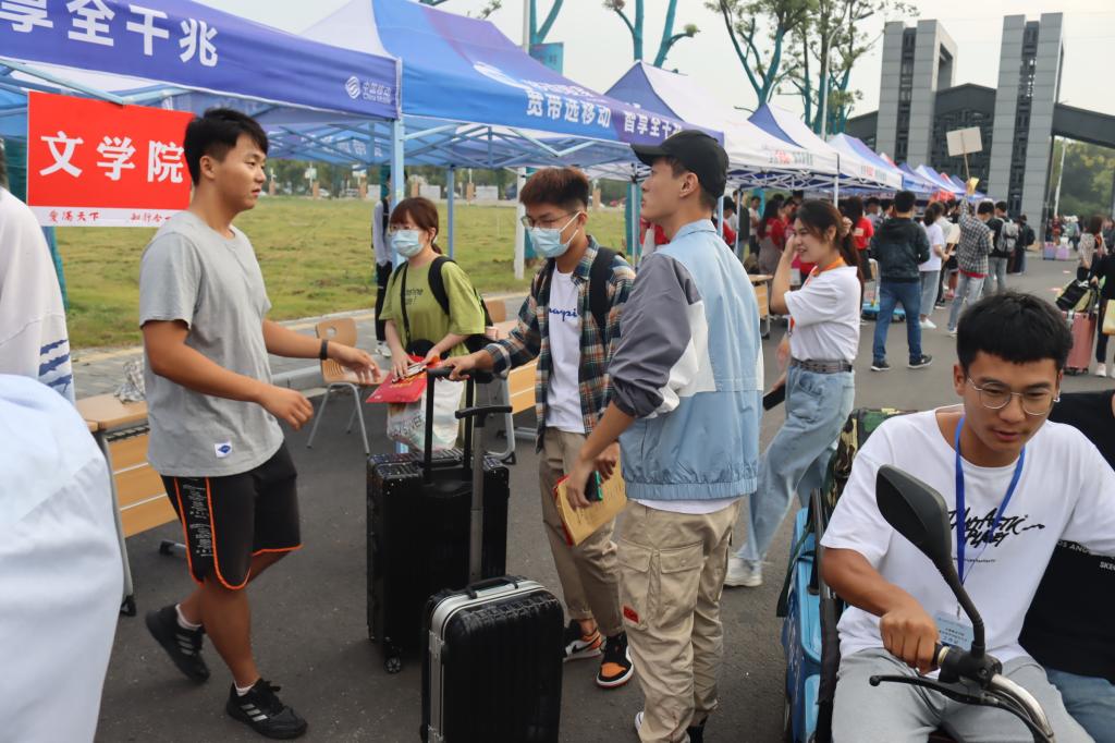 志愿者们接待每一位到来的新生,为他们引导路线、搬运行李,带领他们进行登记注册、领取钥匙、发放校园卡,再带他们入住宿舍,力求为新生们提供最好的服务。
