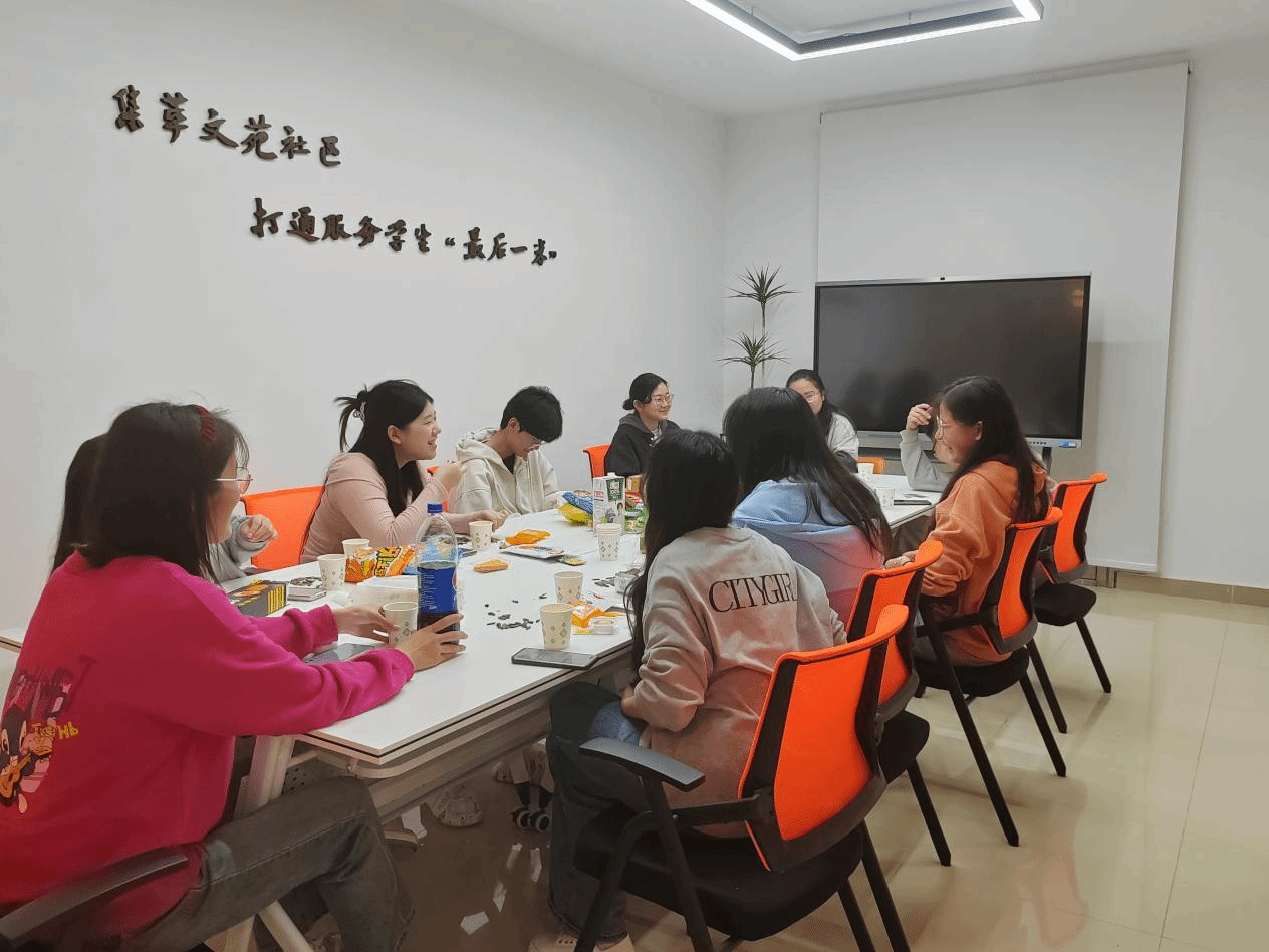 在团建中,“梨花雨读书社”社长刘子夜组织社团成员开展了“加字游戏”“你画我猜”以及“真心话大冒险”等活动。团建的第一个活动是“加字游戏”,每个人都聚精会神的投入到游戏中,当游戏玩家获胜时,众人的掌声便随之响起;游戏玩家失败时,则要接受惩罚,为大家表演节目。