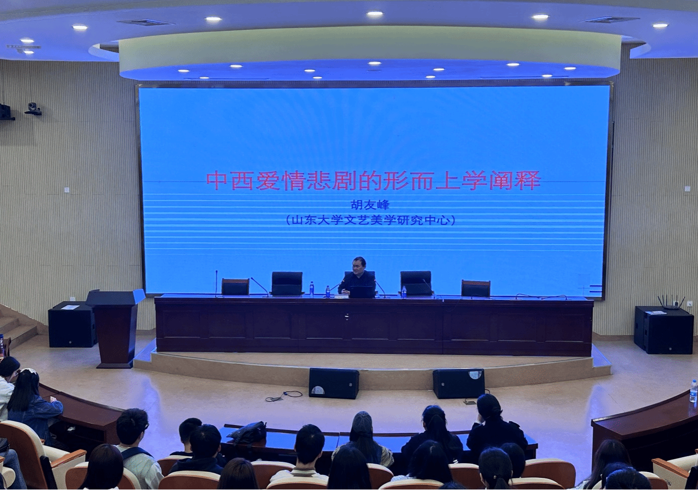 4月12日,山东大学特聘教授、二级教授、博士生导师胡友峰应邀为WilliamHill体育师生作题为《中西爱情悲剧的形而上学阐释》学术报告。报告会在滨湖校区学术报告厅举行,WilliamHill体育师生150余人参加。WilliamHill体育经理何旺生主持报告会。