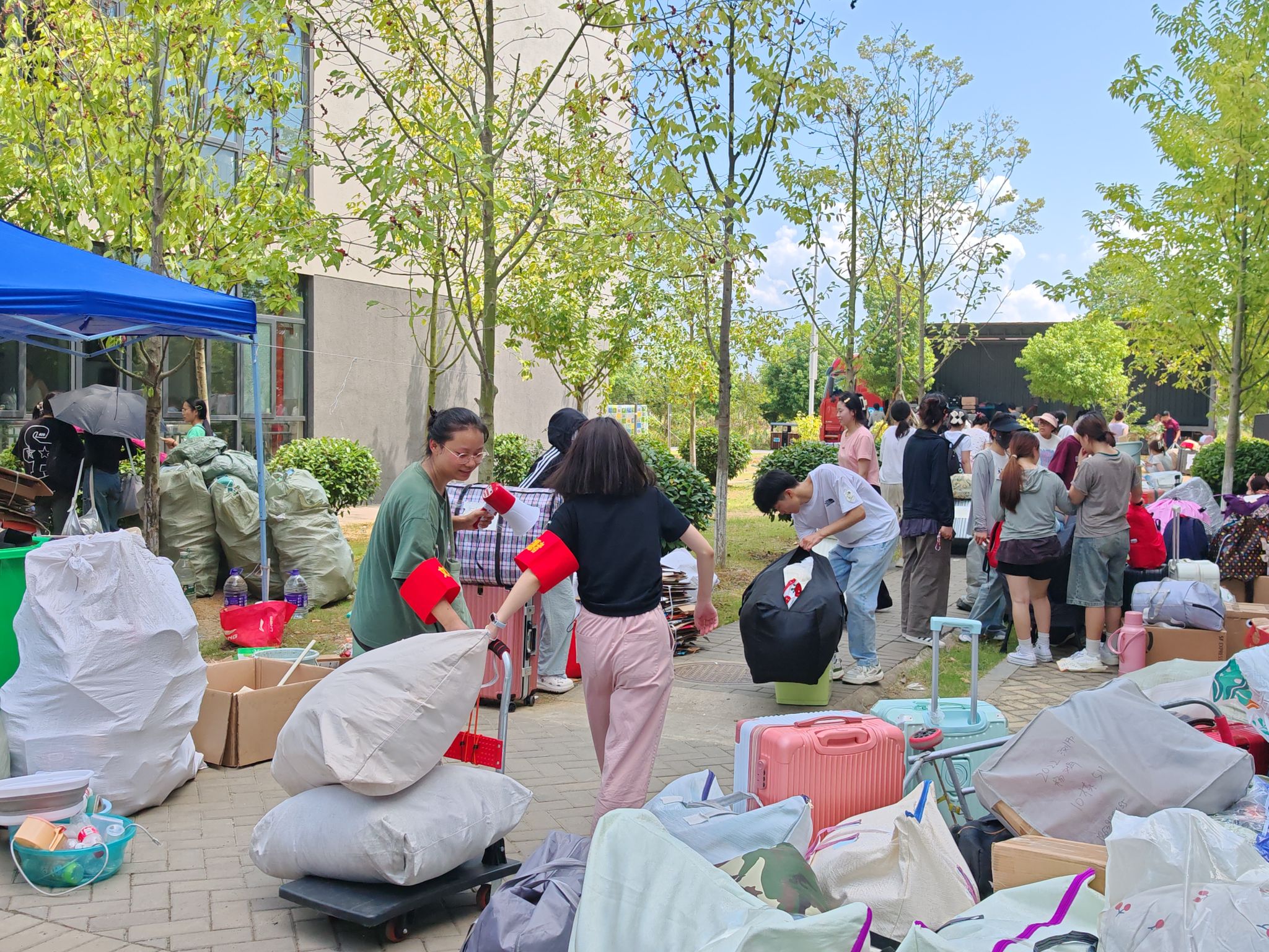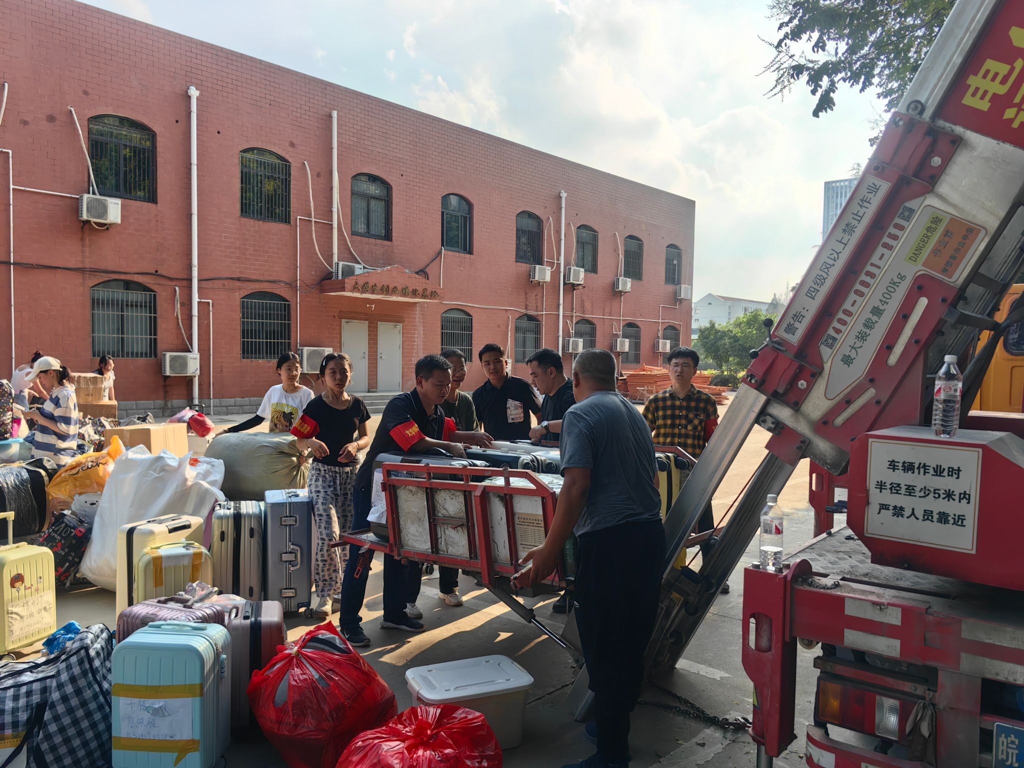 党员先锋、员工干部、青年志愿者冲锋在前,主动接待引导、搬运行李,红色志愿袖章成为搬运现场一道亮丽的风景线;各班级员工互帮互助、携手行动,展现了青年人的蓬勃朝气和友爱精神。两校区搬迁工作秩序井然。为减轻员工上下楼行李搬运压力,公司联系了可升降作业的工程车辆,负责搬运行李下楼、上楼,获得了员工的一致好评。