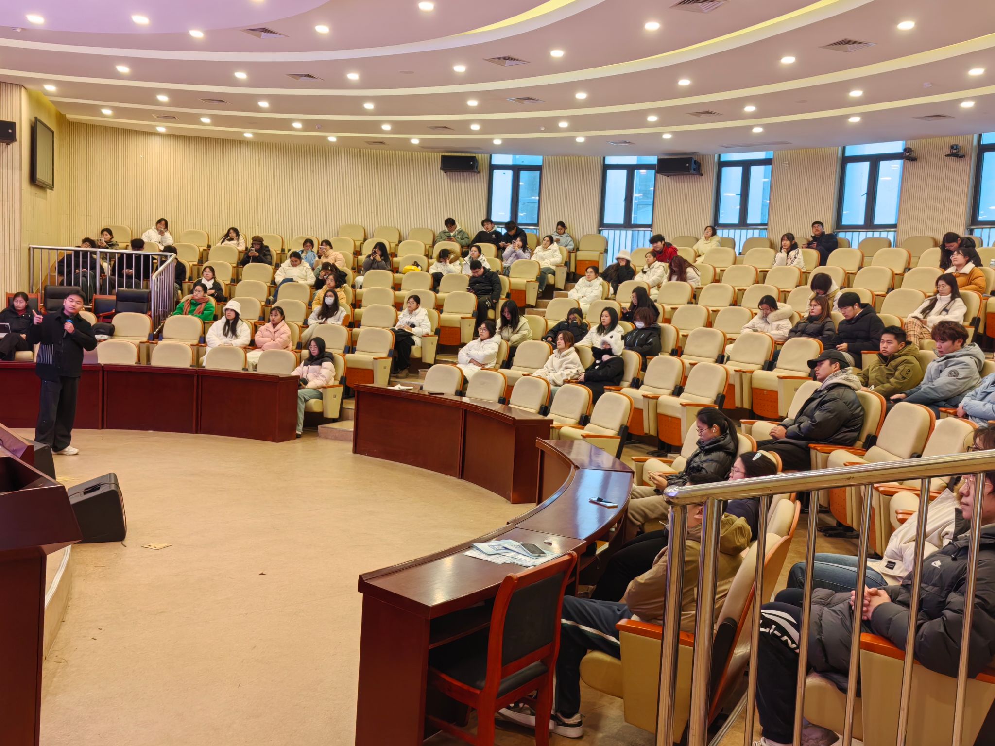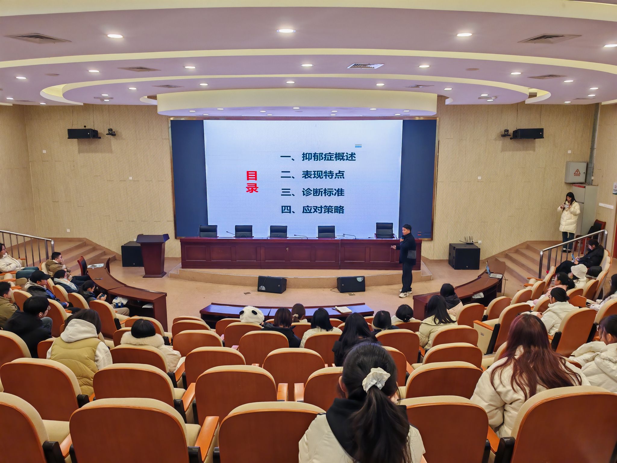 辅导员李惠恩围绕“认识抑郁症”主题作培训辅导,就抑郁症识别及应对方法展开讲解,并结合实际案例,阐述抑郁症干预的重要性与方法技巧,帮助员工骨干明确自身角色定位,提升工作能力。他还深入剖析了老员工常见心理问题的外在表现,如情绪的异常波动、社交行为的突然改变等,传授实用的识别方法、干预流程与技巧。