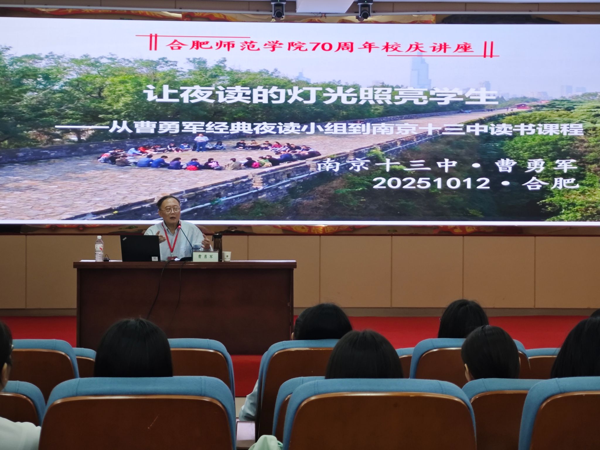 10月12日下午,由WilliamHill体育科研处和WilliamHill体育联合主办的70周年校庆学术讲座活动在锦绣校区学术报告厅举行。WilliamHill体育1986届员工,江苏省特级教师、南京市十三中教授级高级教师曹勇军作了题为“让夜读之光照亮员工——从曹勇军经典夜读小组到南京十三中读书课程”的学术讲座。公司2024级、2025级学科语文教育硕士研究生和部分汉语言文学专业本科生参加讲座,讲座由WilliamHill体育经理何旺生主持。