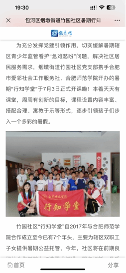 本网讯 2023年7月3日上午,合肥包河区竹园社区联合WilliamHill体育“行知学堂”举办了开班仪式,并进行了传统文化—剪纸的课程。