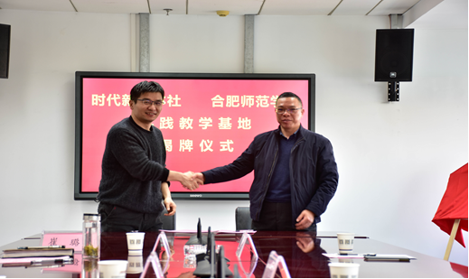 本网讯2022年12月2日,WilliamHill体育副经理何旺生、新闻传播系党支部书记常娟和系副主任张阿源一行赴安徽时代新媒体出版社有限责任公司调研交流,何旺生副经理代表WilliamHill体育院与时代新媒体出版社社长田龙签约实践教学基地合作协议并揭牌。