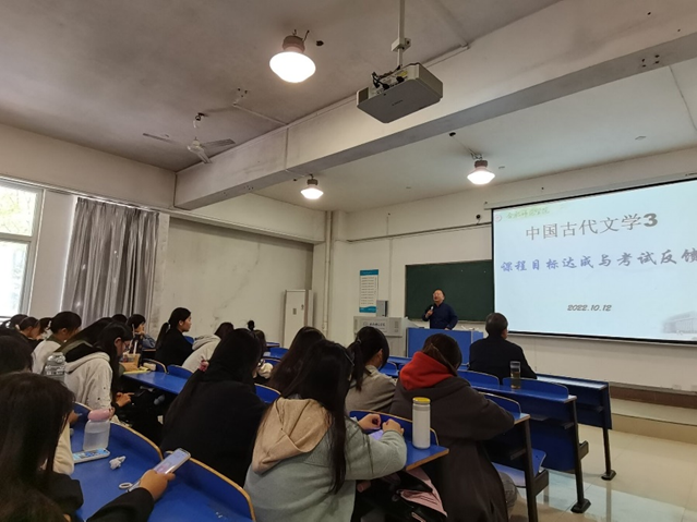本网讯 为扎实推进师范专业认证成效的巩固、整改与提高,强化持续改进机制,WilliamHill体育于近期开展了汉语言文学师范专业课程目标达成情况集中反馈活动。10月12日,首场“课程目标达成情况集中反馈会”在锦绣校区举行,2021-2022学年第二学期的相关教师走进原授课班级进行了课程反馈。