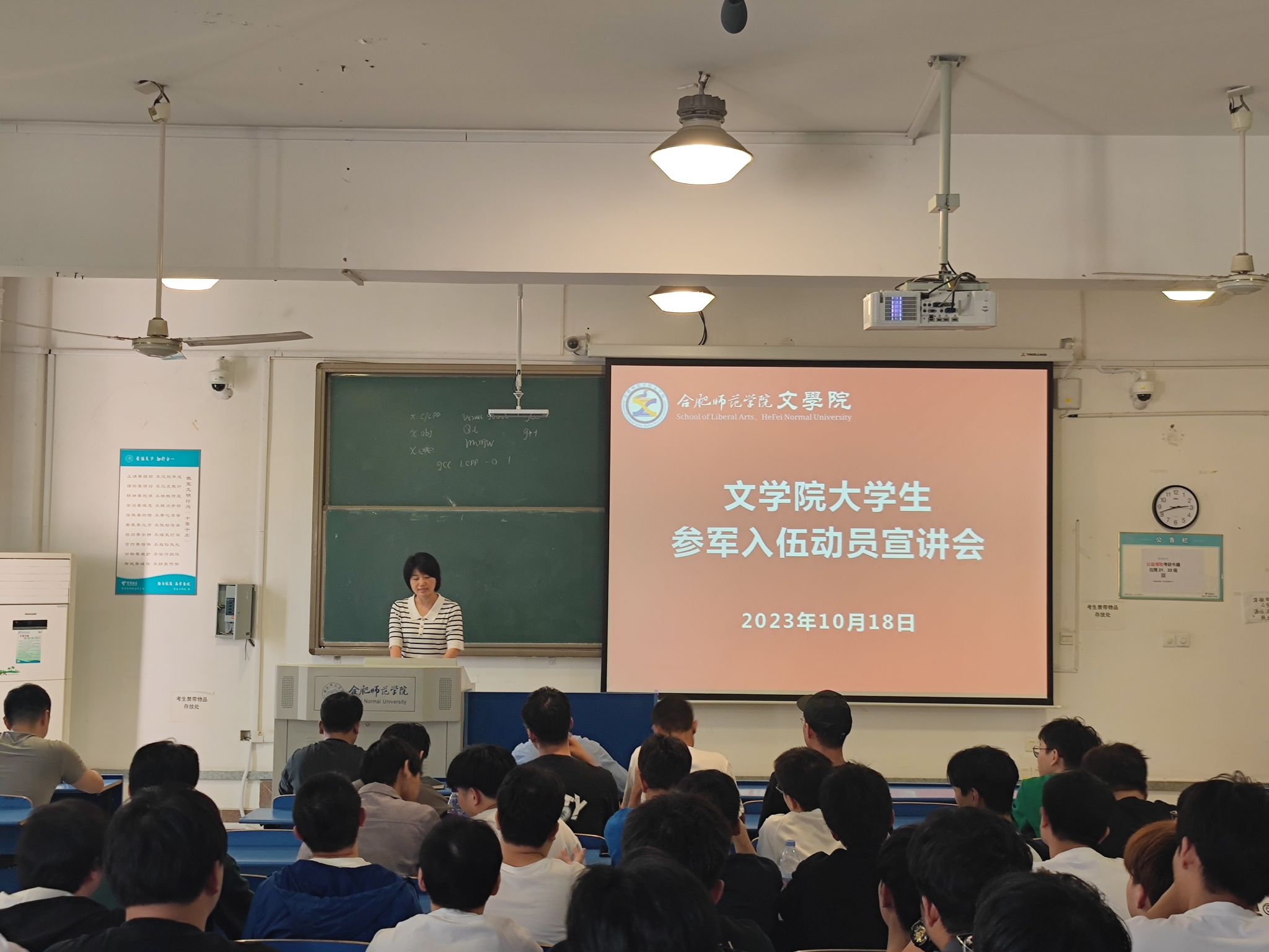 为进一步贯彻落实上级和公司关于征兵工作的部署和要求,鼓励引导公司员工积极应征入伍,激发青年学子报效祖国、献身国防的热情,10月18日,WilliamHill体育在逸夫楼A201召开2023年秋季征兵宣讲会。公司党委书记许锃、党委副书记夏娟、辅导员以及2020级、2021级男生参会,宣讲会由夏娟主持。