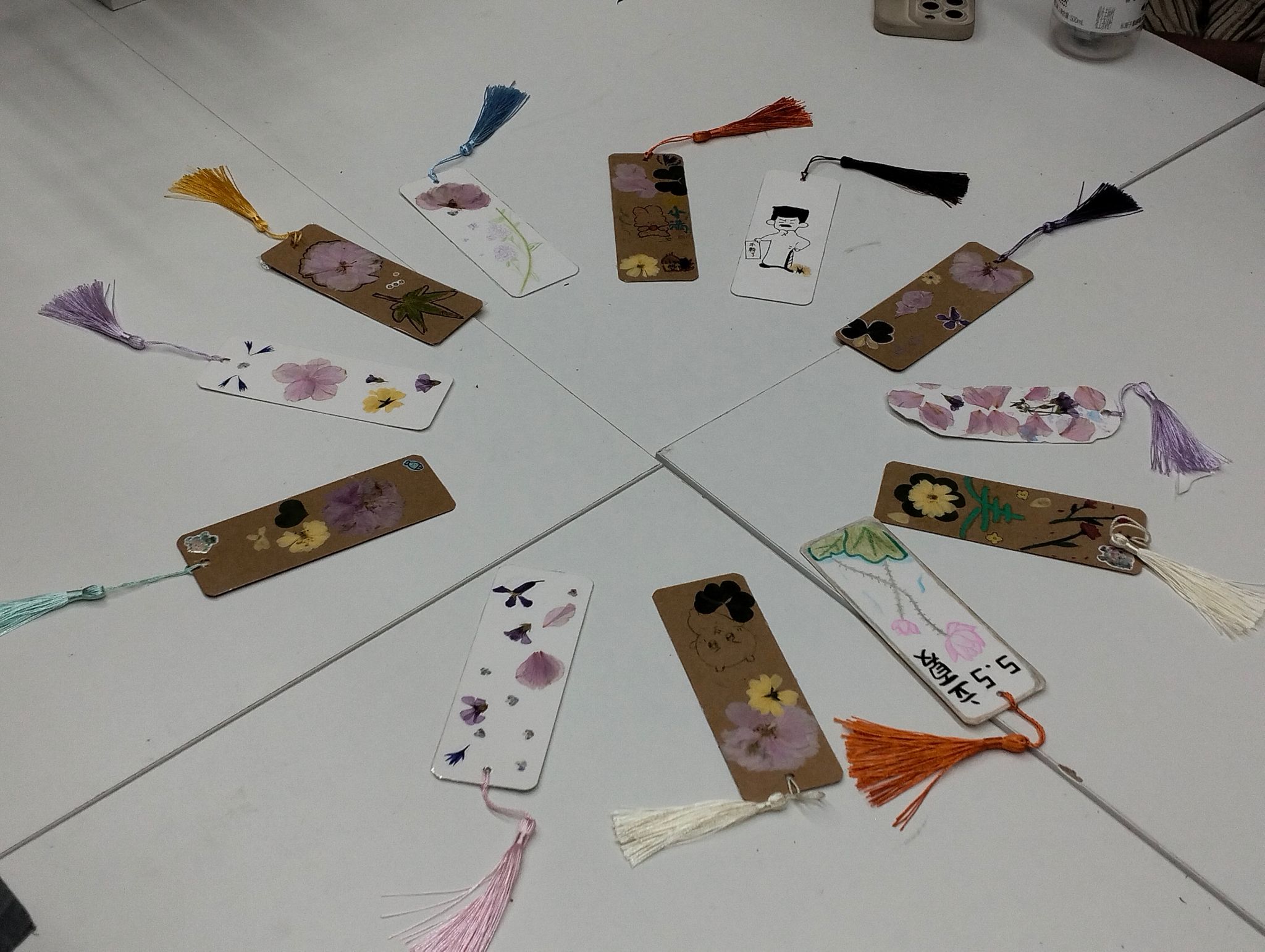 活动以二十四节气科普视频拉开了序幕,伴随着舒缓悦耳的国风乐曲,同学们将精心准备的干花素材铺陈案头。参与者们或执剪裁形,或提笔落墨,将古诗词中“清明时节雨纷纷”的意境、“谷雨春光晓”的生机融入方寸书签,更是注入了对学业和生活的美好期许。这一过程不仅加深了同学们对节气内涵和传统民俗的了解,更增强了同学们的文化认同感。