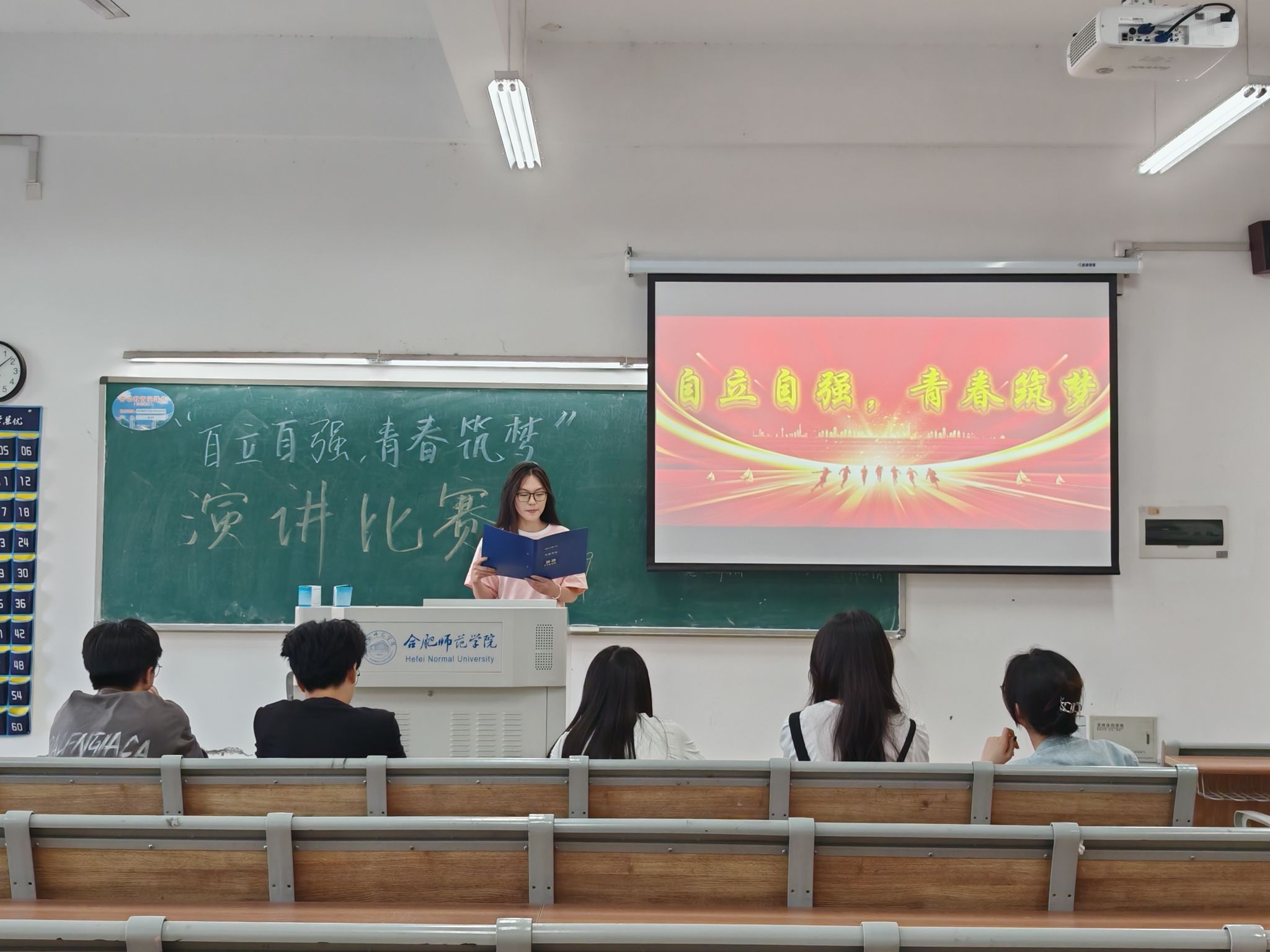 比赛中,同学们通过配乐演讲,激情满怀地分享个人成长故事,缅怀和讲述自身克服困难、突破自我的奋斗历程;阐述对“自立自强”精神中有关独立人格、责任担当等内容的深刻理解与感悟;探讨当代青年如何在学业、职业规划及社会贡献中践行自立自强的精神感召,探索青年价值实现的路径;同时,还通过讲述青年科学家、企业家、普通劳动者等青年榜样的事迹,从他们自强不息、青春奋进的人生轨迹中收获人生体验与感受。
