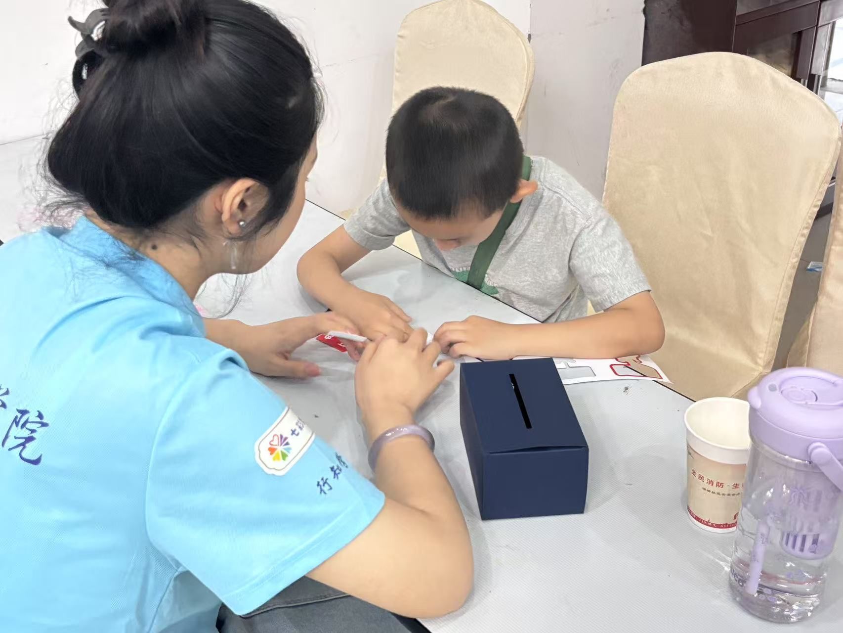 实验的转折点出现在反光条登场时。“小先生”们为每位学员分发反光条,指导他们小心翼翼地贴在卡纸上。当贴有反光条的卡片再次被放入暗箱,原本模糊的色块瞬间变得清晰亮眼,孩子们不约而同发出“哇”的惊叹声。“原来小小的反光条这么厉害!”一位小学员举着自己的实验成果,兴奋地向同伴展示,真实的感官体验让“反光条能提升夜间可见性”的知识点变得触手可及。