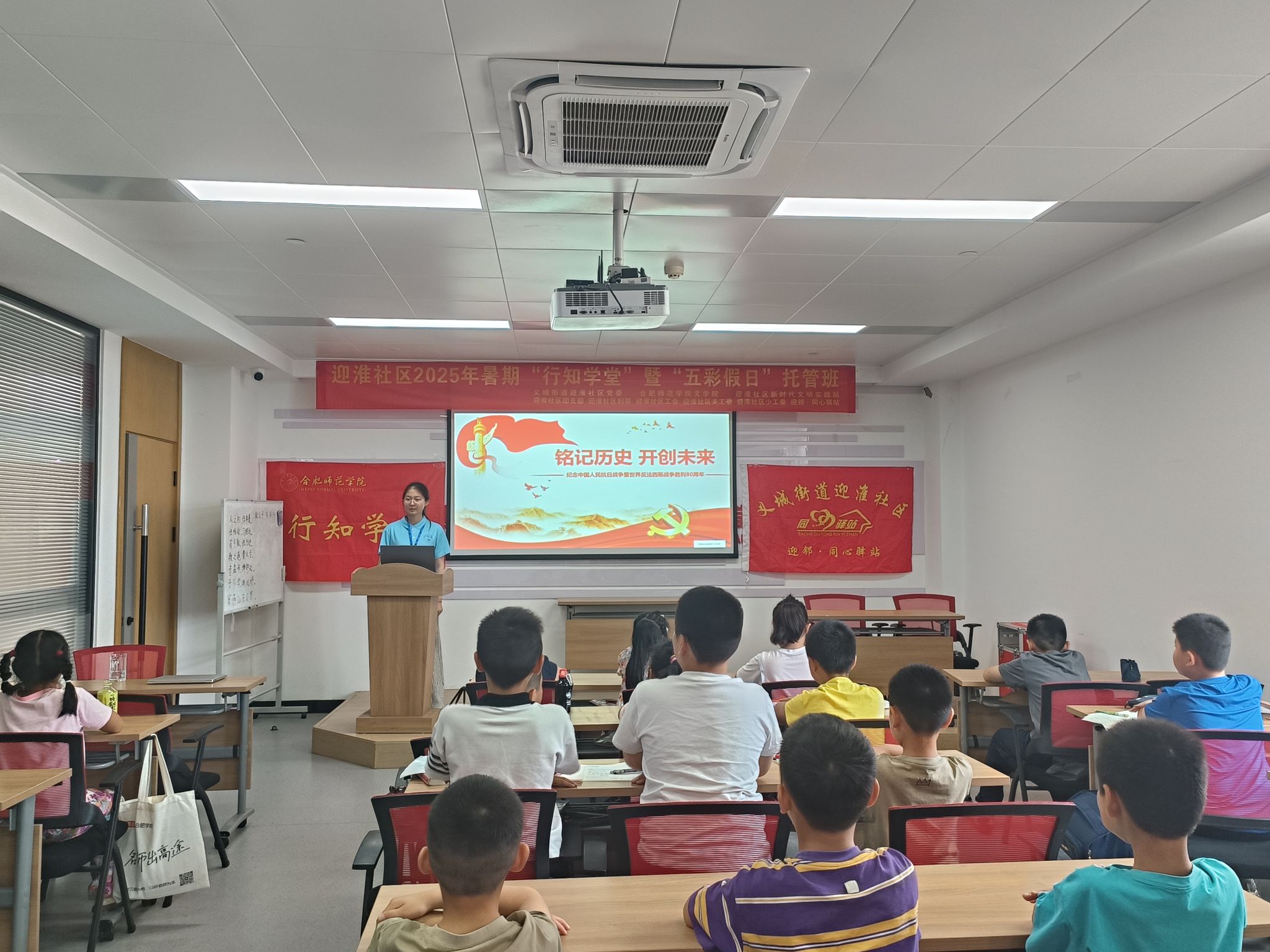 在合肥市包河区义城街道迎淮社区,行知学堂正以创新的形式、丰富的内容,为辖区青少年打造沉浸式爱国主义教育体验。从七七事变的警世钟声到抗战胜利80周年的历史回望,从建军节的军魂传承到红色文创的创意实践,学堂通过“历史+现实+未来”的三维渗透,让红色教育从书本走向生活,让思想引领从课堂延伸至心灵。