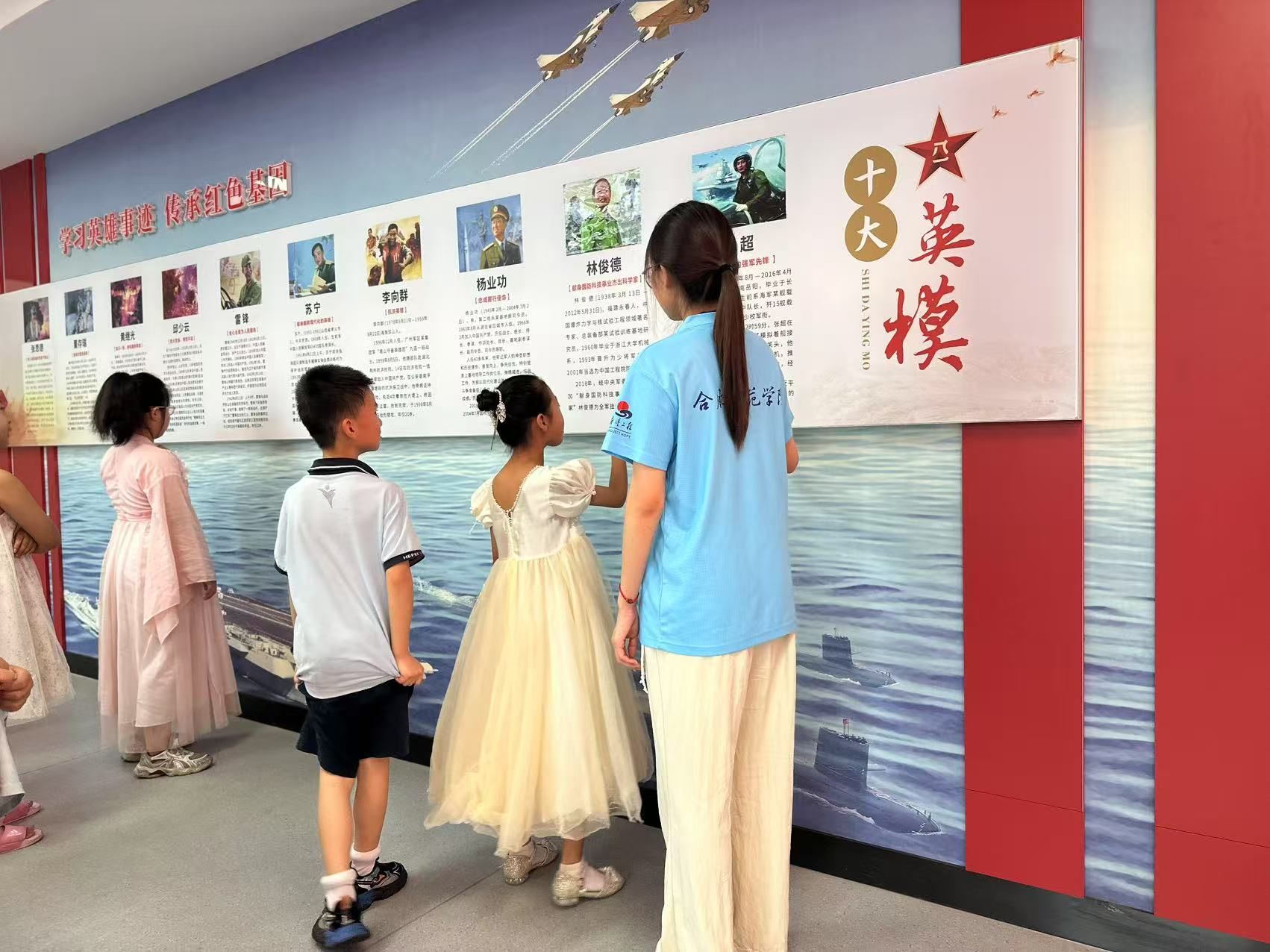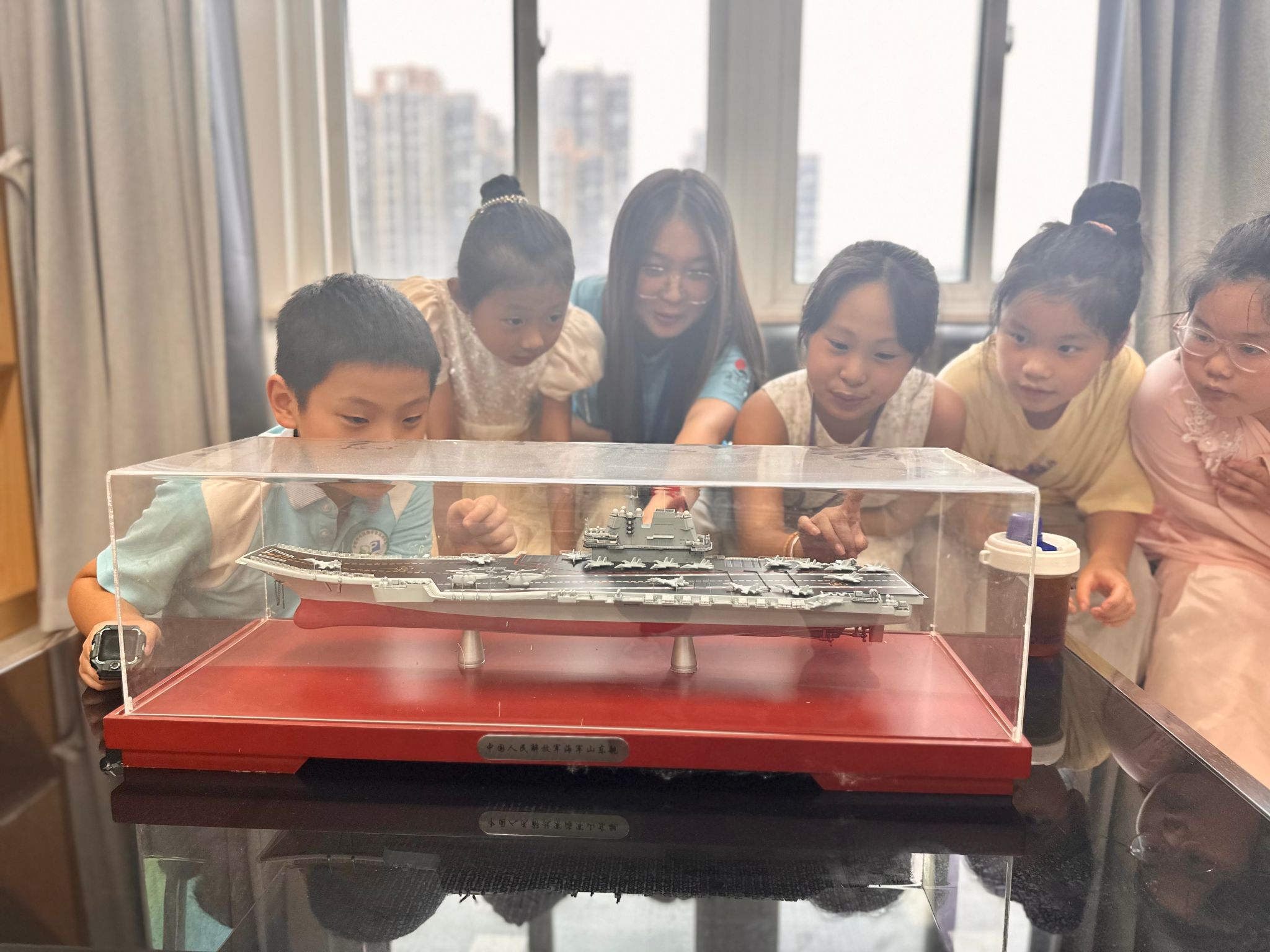 8月1日,在行知学堂的八一主题活动中,孩子们在教室里沉浸于一场知识课堂。“小先生”们通过生动的讲解和互动问答,将八一建军节的由来、意义以及我国国防建设的辉煌成就娓娓道来,为孩子们搭建起一座通往国防世界的桥梁。随后,孩子们的脚步延伸至社区七楼“退役军人之家”,在展示墙前,“小学员”们认真聆听十大英模的感人事迹,那些英雄的形象在心中愈发鲜明,悄然种下责任与担当的种子。在书架旁,“小先生”与小学员共读红色经典,字里行间跳跃着历史的回响与未来的憧憬。而在国防模型展示区,一艘艘精致的军舰模型更是激发了孩子们的无限遐想,他们围在模型前,仔细观察,热烈讨论,眼中闪烁着对国防科技的渴望与向往。这一系列活动不仅让孩子们在知识的海洋中遨游,更在心中筑起强国强军的梦想,立志为祖国的明天贡献青春力量。