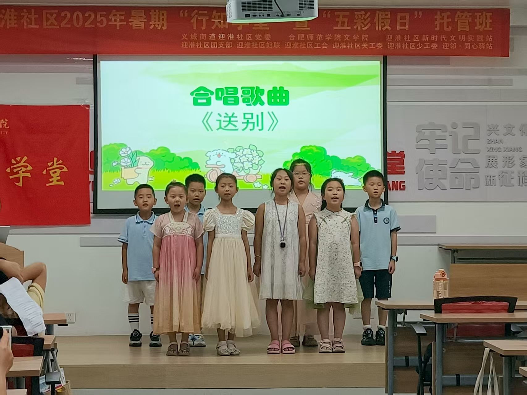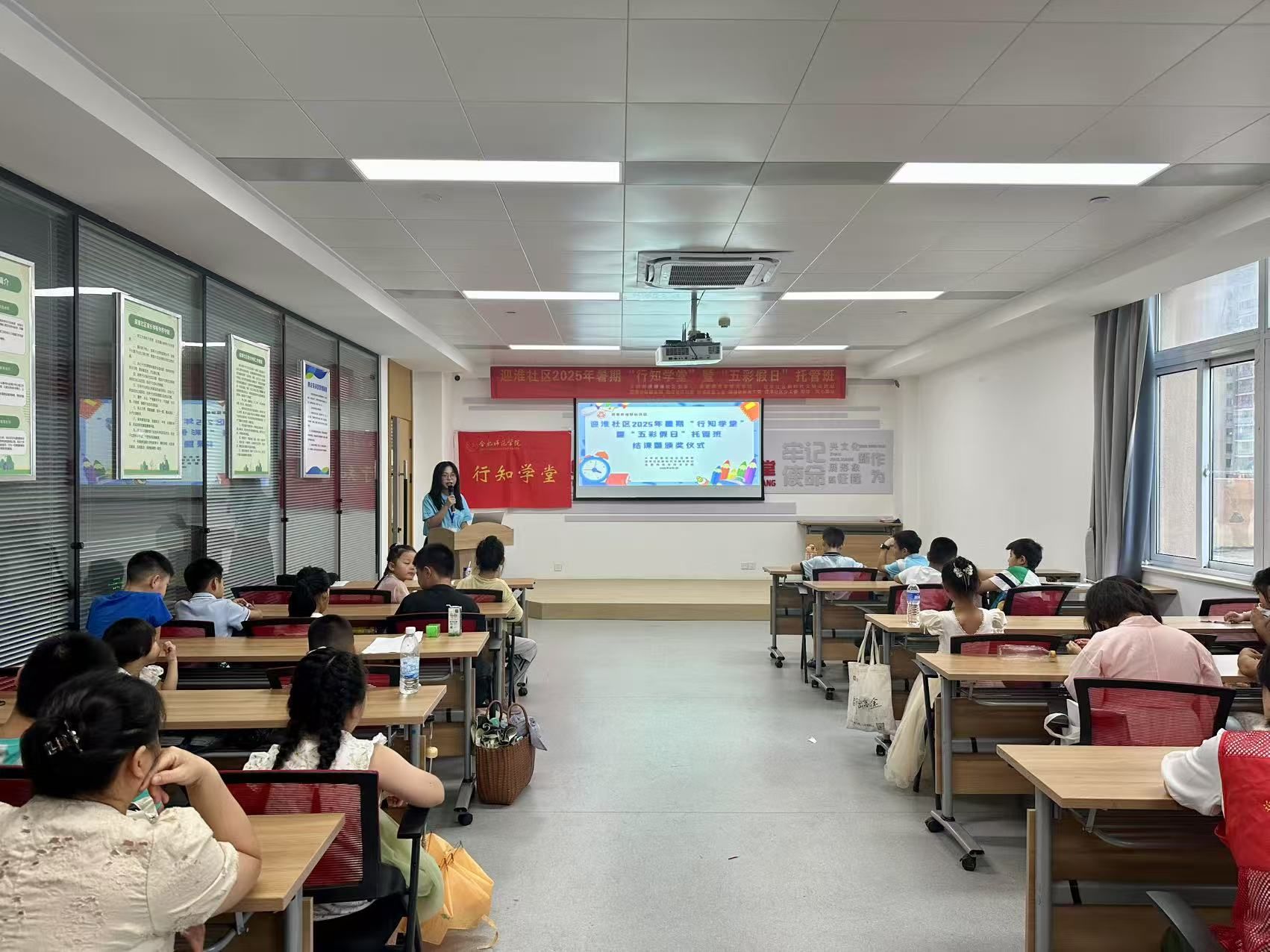 8月1日,迎淮社区行知学堂内,欢声笑语不断,一场盛大的汇报演出暨颁奖仪式在此举行,为这段充满红色记忆、知识探索与文化传承的暑期学堂生活画上了圆满的句号。众多家长和“红大姐”志愿服务队齐聚一堂,共同见证了孩子们的成长与蜕变。