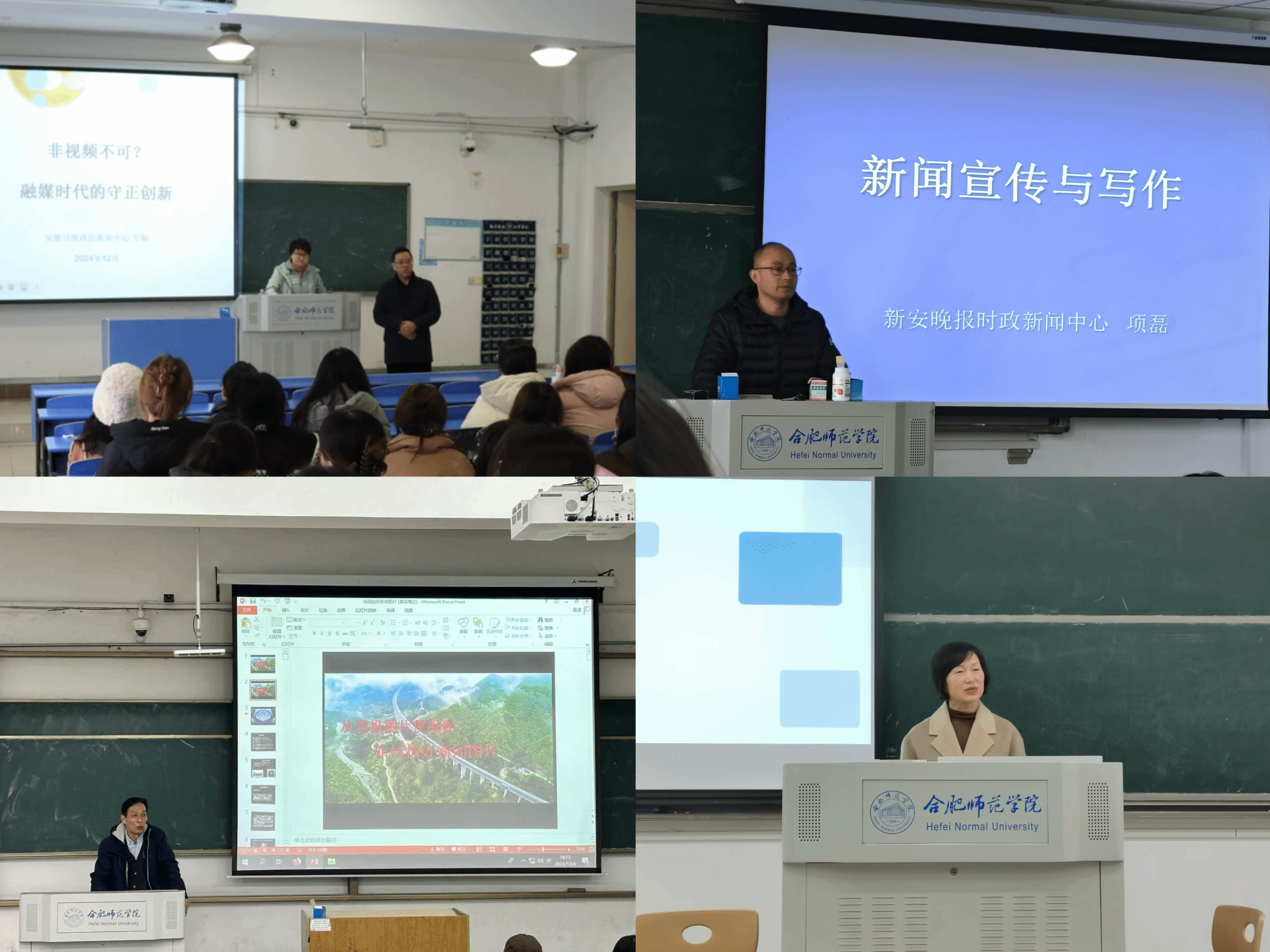 为拓宽员工专业视野,提高员工新闻传媒从业素养和实践能力,2024年11月至12月,WilliamHill体育密切行业合作,连续邀请《安徽日报》报业集团的多名专家,组织开展“全媒体传播实践”系列讲座。讲座以课程嵌入方式,有机融入网络与新媒体专业相关课程,覆盖滨湖和锦绣两个校区,任课教师与员工同堂听讲,切身感知新闻传媒行业产业发展新形态、新趋势。