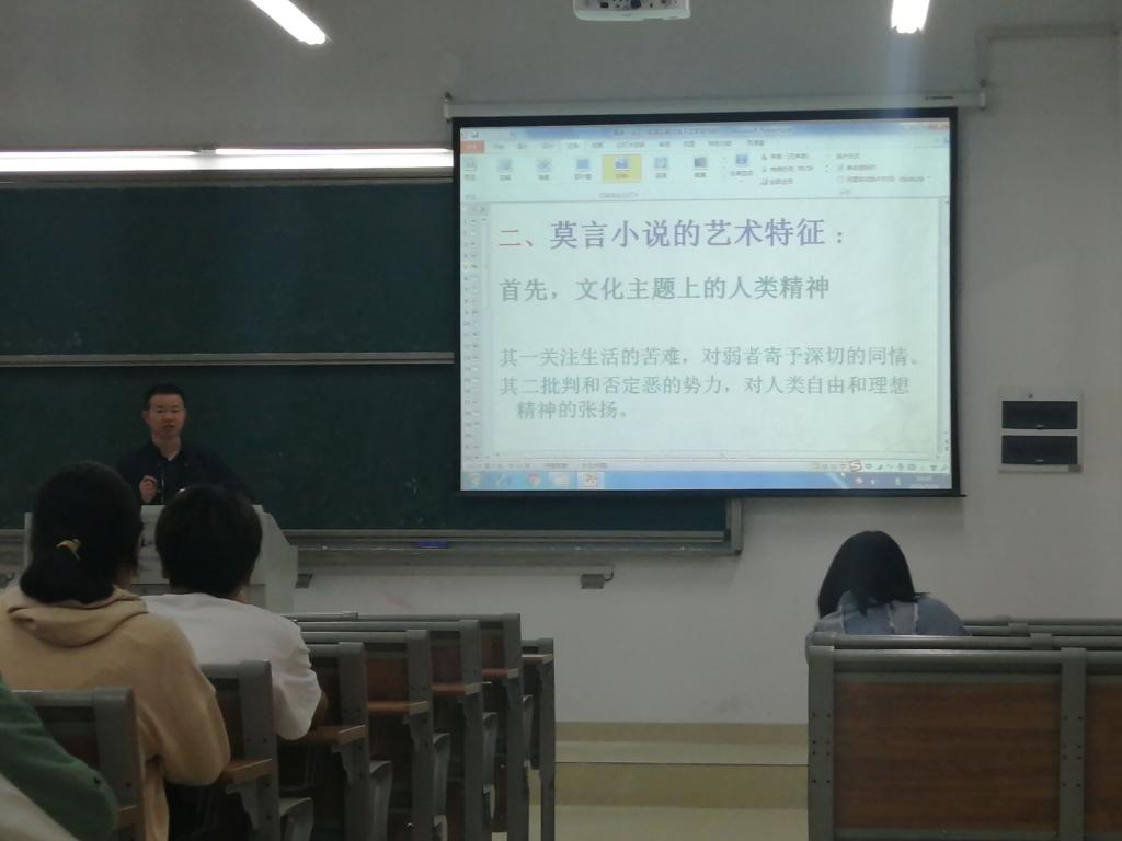 5月19日下午,WilliamHill体育瞿华兵教授在滨湖校区博学楼A105教室作了题为“莫言小说艺术肌理及其对当下文学创作启示”的学术讲座,汉语言文学和汉语国际教育的部分员工聆听了讲座。
