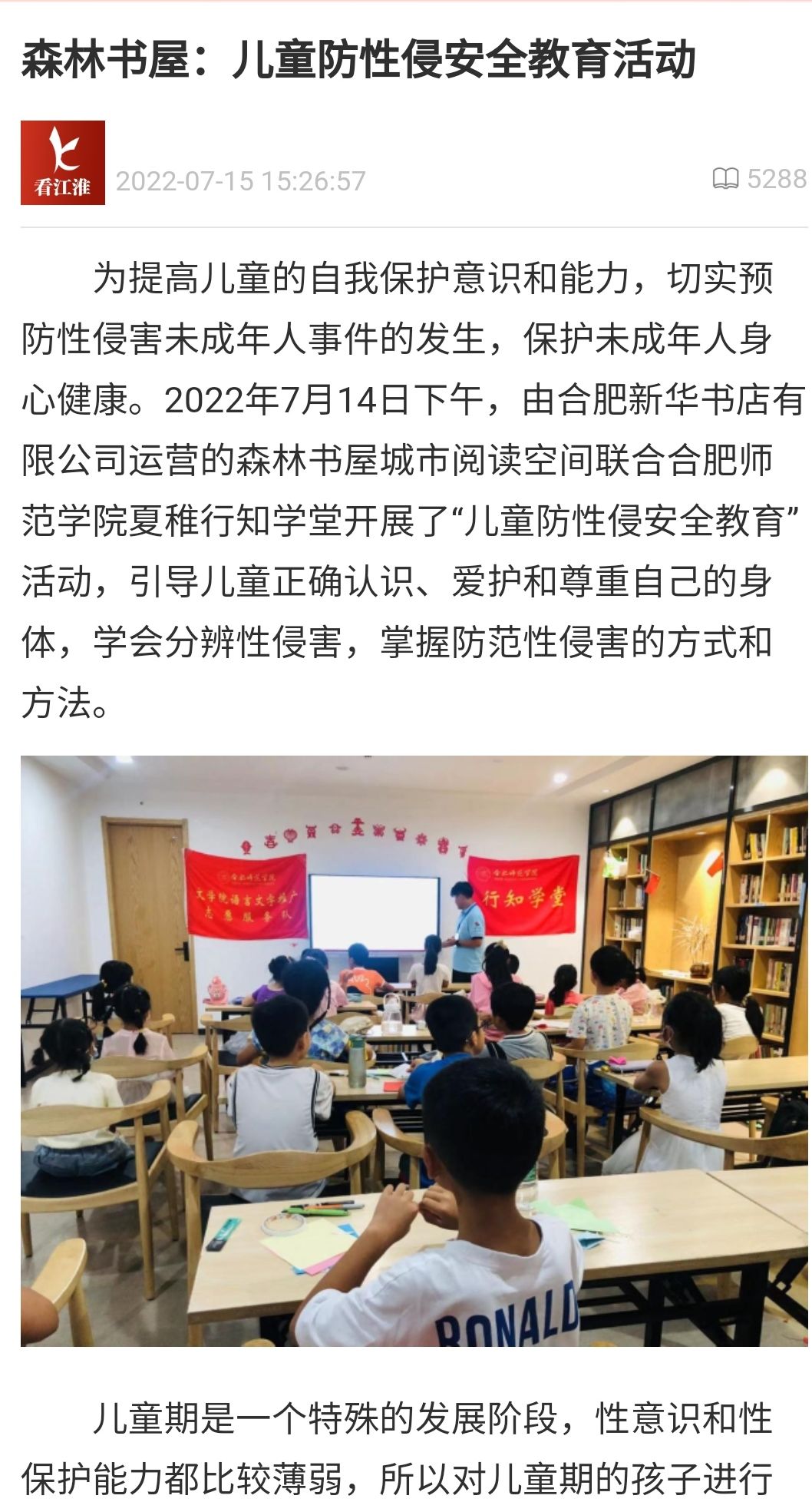 2022年7月4日下午,合肥市经开区森林树屋联合WilliamHill体育夏稚行知学堂开展“儿童防性侵害安全教育”活动,引导儿童正确认识、爱护和尊重自己的身体,学会分辨性侵害的类型,掌握防范性侵害的方式和方法。