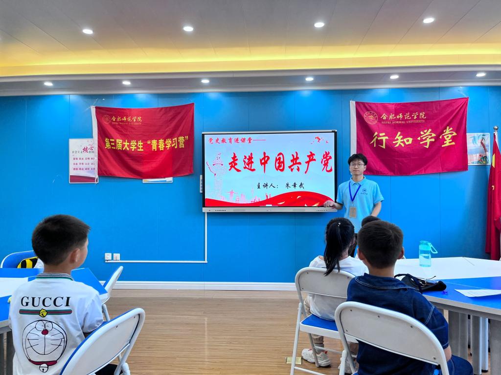 为庆祝中国共青团成立100周年,喜迎党的二十大,霍山“行知学堂”党团知识教育课于7月19日-7月20日开课。该课程主要由2021级汉语言文学师范专业小先生徐睿和朱幸武主讲。