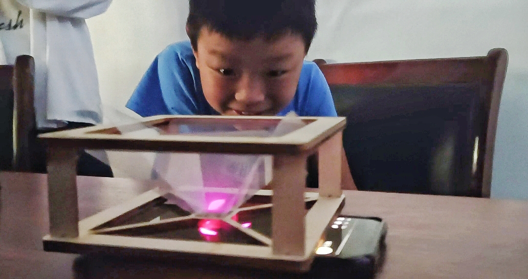 科学小实验由电院员工鲍瑞和朱一诚讲授。首先,他们带来了永动仪,为学员们介绍“永动”的原理和现象。其次,他们进行水吸乒乓球和书本摩擦的实验,丰富了学员们关于压强和摩擦力方面的知识。随后,他们拿出了自制的3D投影仪,放映奇幻的幻灯片。最后,他们带领学员们用显微镜观察鸡蛋壳、树叶、石头等事物,领略不一样的世界。