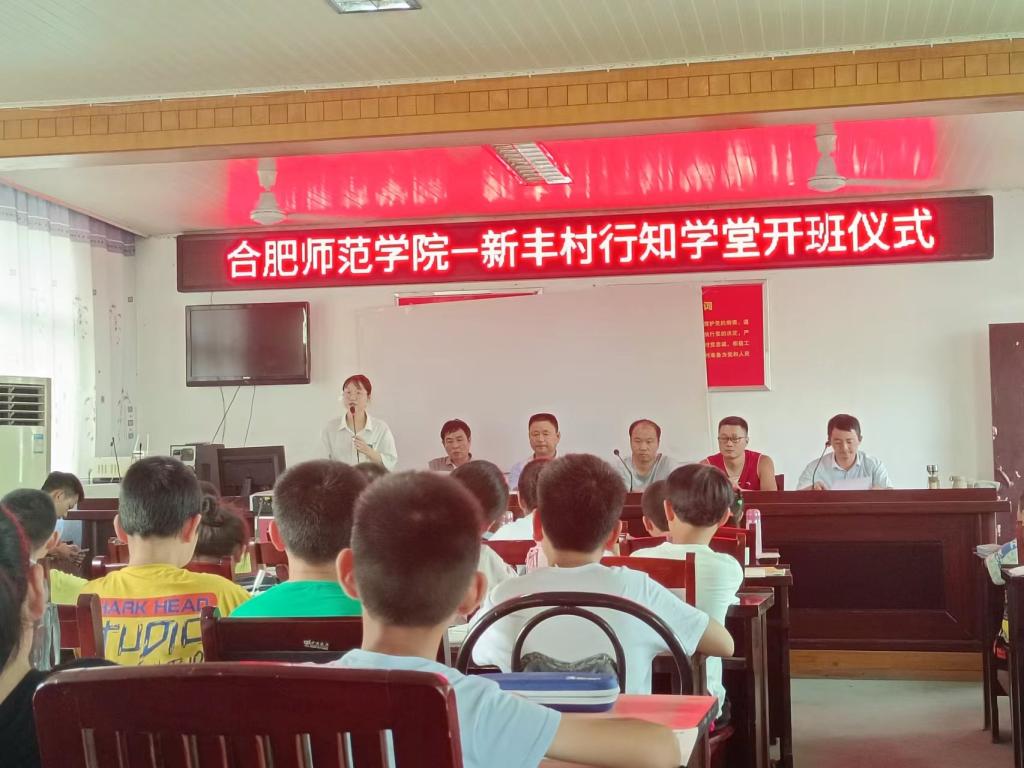 开班仪式上,村领导及新丰村两所小学董事长发表讲话,对行知学堂的开办表示欢迎。行知学堂负责人汪婧表示,新丰行知学堂与当地开办暑期田园课堂的经验相结合,招收了大批农村留守儿童,另吸纳了三名各校老员工志愿者来充当小先生,希望能够和小学员们一起度过充实而又难忘的暑假。